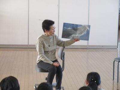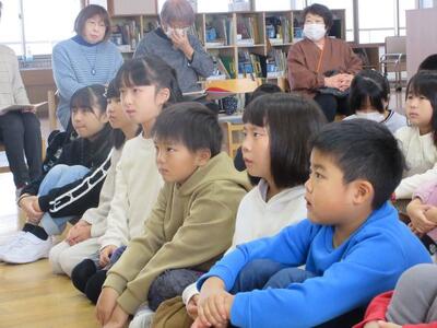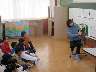 11月5日(水)に移動お話会を行いました。昔語りの会並びにひまわりサークルの皆様方10名にご来校いただき、全学年に45分間たっぷりとお話をしていただきました。身振り手振りを交えた独特の語り口調に惹きこまれたり、提示いただく絵本の世界に惹きこまれたりと、あっという間の45分間でした。本校は、今、まさに「読書の秋」。国語の学習でも朝の時間にも本に親しむ環境が整っています。これからもたくさん読書の魅力に触れさせていきたいと思います。