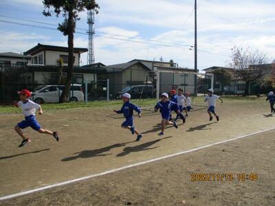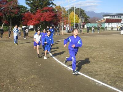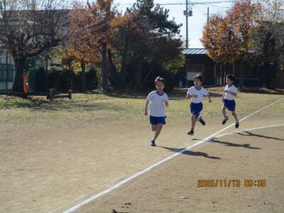 10月30日(木)、11月中旬の校内持久走記録会に向け、子供たちの走力と持久力たかめるために中間休みマラソンを始めました。約5分間、体育委員会の呼びかけの下、自分で決めためあてに沿ってグラウンドを走ります。「走っても走らなくてもいい」という考え方ではなく、みんなが心一つに「必ず走る」という考え方で臨んでいます。もちろん、時間のある教職員も一緒に走り子供たちを励まします。記録会当日までどれほど記録が伸びるか楽しみです。