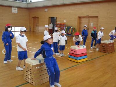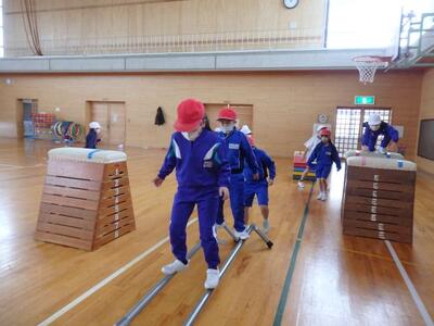 12月4日(木)と5日(金)の2日間にわたり、本校スポーツアドバイザーの荒木さんを講師に全学年対象のパルクール教室を実施しました。昨年度の試行的な取組みの中で、子供たちが真剣な表情で、与えられたコースに挑戦していく姿が見られ、パルクールの持つ魅力と教育効果を感じることができました。そこで、今年度は全学年の子供たちを対象に、運動能力や思考力、挑戦する心を育みたいと考えました。学年によって運動量や取り組み方に差はあるものの、子供たちは回数を重ねるごとに、真剣な表情になり、動きが一層スムーズになっていきました。来年度もぜひ体験させたい種目です。