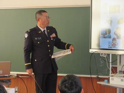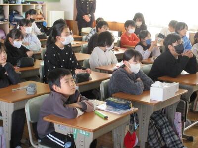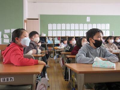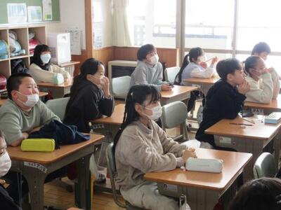 12月5日(金)、5年生を対象に職業講話として、自衛隊山形地方協力本部 東根地域事務所の工藤所長さんと菅野主任広報官さんからお話をいただきました。主な内容として、自衛隊の種類や仕事内容、自衛隊の仕事を通して工藤所長さん自身が学んだことなどです。話しぶりから温かなお人柄が滲み出ており、子供たちは真剣にメモを執りながらお話を聴いていました。講話の最後に、仕事をする中で、「挨拶」と「努力」が大切であること、そして「仕事は誰かの役に立ち、人を幸せにする。そして、それによって自分も幸せになる。」という大切なメッセージをいただきました。