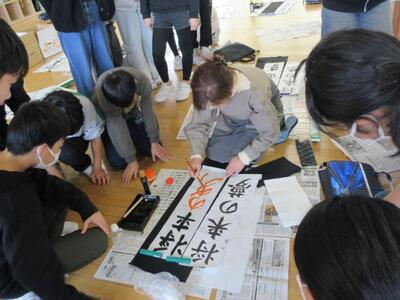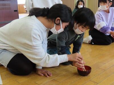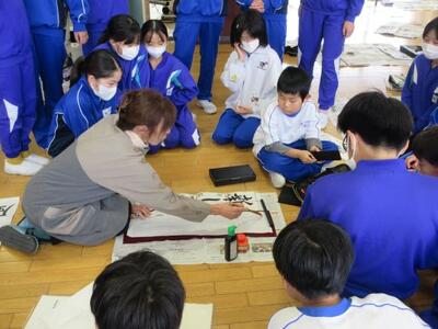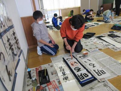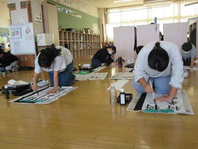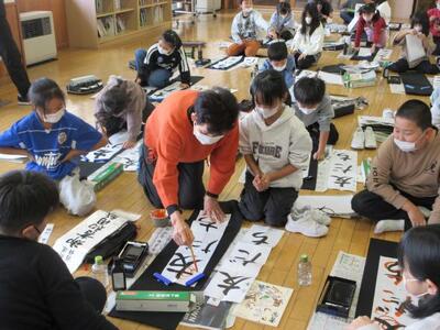12月8日(月)、1月の校内書初め大会に向けてレベルアップを図るため、3年以上の子供たちを対象に書初め教室を行いました。地域講師は、昨年度に引き続き、渡部さんと今田さんです。書初め用紙の折り方や筆の持ち方の基本はもちろん、字形を整えるためのポイントを丁寧に教えてくださいました。そして、子供たちが練習している中を回り、温かくお声がけいただいたり、朱墨で花丸を付けて価値づけていただいたりしました。今回の学びを今後の書写学習や年末年始休業中の家庭学習に繋げたりして、さらなるレベルアップを図りたいと思います。