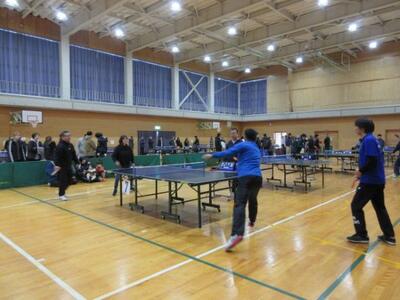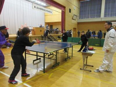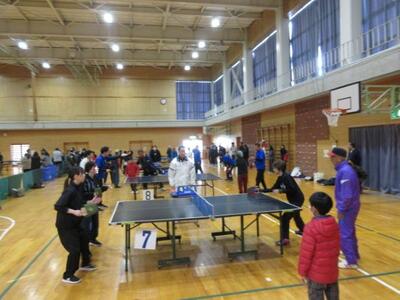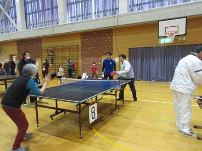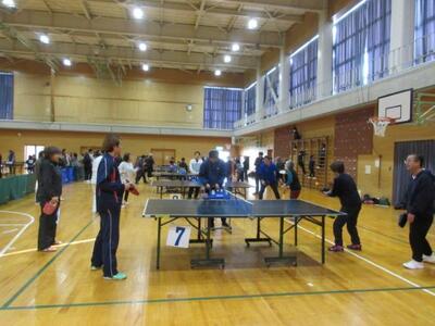 12月7日(日)、第40回谷地南部地区卓球大会が開催されました。学区民・地区民の皆様の熱い想いで続いてきた卓球大会が今回で幕を閉じることとなり、大変残念です。日頃お世話になっている地域の皆様のために学校として何かお手伝いできないかと考え、谷地南部小をこよなく愛する教職員精鋭7名が参加することにしました。「参加する以上は勝ちに行く」という姿勢の下、全員が一丸となって相手チームと対戦を重ねました。何と、結果は決勝トーナメント進出!! 1回戦で敗退したものの地域の皆様と触れ合う良い機会となり、大変楽しい時間を過ごすことができました。町教育委員会よりスリッパ卓球用のスリッパとピンポン玉をいただきましたので、3学期から冬期間の軽スポーツの一つとして子供たちにも卓球の楽しさを味わわせ、谷地南部地区の「卓球熱」を引き継いでいきたいと思います。40年にわたり大会運営に携わってこられた関係の皆様、事務局の皆様に心から敬意を表したいと思います。本当にお疲れ様でした。