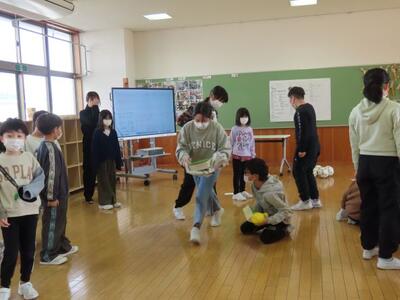 12月9日(火)、インフルエンザ感染拡大で延期していた児童会「秋祭り」を行いました。計画委員会と高学年の子供たちを中心に企画し、時間を見つけながら丁寧に準備を進めてきました。縦割り班メンバー同士のコミュニケーションを促したり協力したりする場面を生み出す複数のゲームが用意され、各班とも真剣に笑顔でゲームを楽しんでいました。計画委員会や高学年の子供たちには今回の成果と課題を整理し、来年度に繋げて欲しいと思います。また、今後も縦割り班活動は続きます。仲間意識が一層高まるよう、指導・支援していきたいと思います。