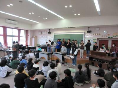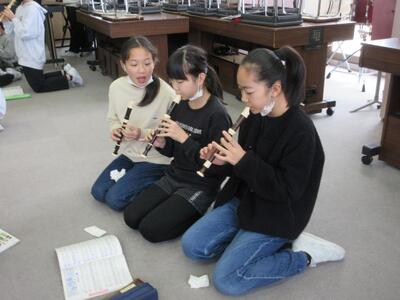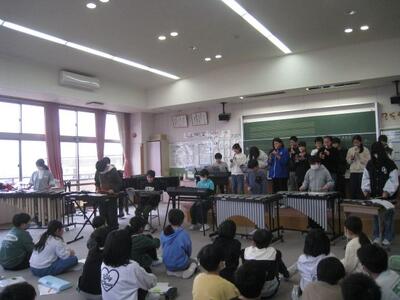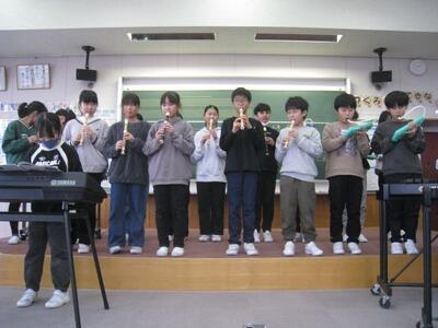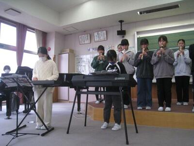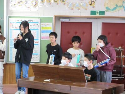 12月10日(水)4校時、5・6年生が合同音楽を行いました。日頃の音楽学習の成果を披露する場として、5年生は「キリマンジャロ」という曲、6年生は「風を切って」という曲を合奏しました。聴いてくれる相手がいることで、それぞれの学年の子供たちが緊張しながらも真剣に合奏していました。また、先輩の合唱から学びたいとの思いから、4年生も一緒に聴きました。互いの感性を磨き、温かな交流が生まれた素敵な時間となりました。