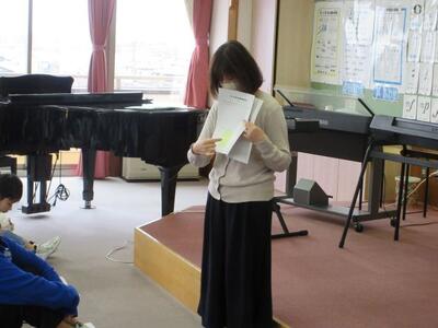 12月10日(水)、2学期最後の読み語りが1・4年生を対象に行われました。お二人の読み語り講師が選本くださった魅力的な絵本を、それぞれの学年の子供たちに複数冊ずつ丁寧に読んでいただきました。1年生は、途中出てくる言葉に敏感に反応して問い返す姿も見られ、集中して聴いている様子に感心しました。3学期も読み語りを楽しみたいと思います。