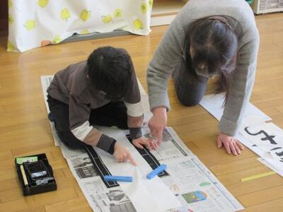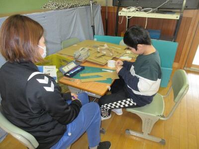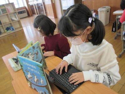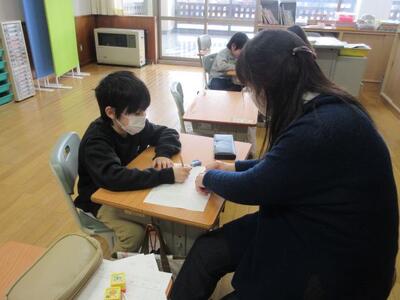 12月16日(火)2校時。2年生は、音楽で合奏の発表会。グループのメンバー内で担当する楽器を分担し、曲を演奏します。聴いている仲間は、歌を歌って演奏を支えます。どちらも真剣、仲間への思いやりが感じられます。3年生は、国語で絵本の紹介。仲間にお薦めの本を一緒に読んだり、タブレットに記録したり・・・。仲間同士の会話が弾みます。ふたば学級は、それぞれの子どもの学びの時間。3年生は、書初め大会に向けた練習中。指でなぞり書きをしてイメージを持った後に、いよいよ毛筆で。4年生は、段ボールを使用してジェット機を製作。本物に近い表現力で、ジェット機内のコックピットや客席まで再現!! 手先の器用さと集中力に感心します。