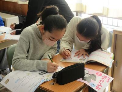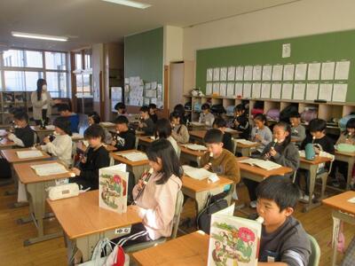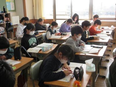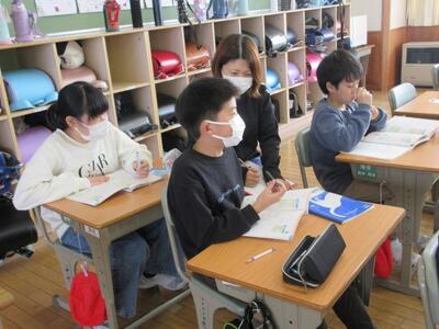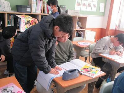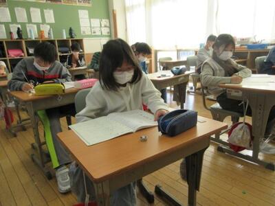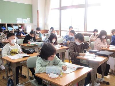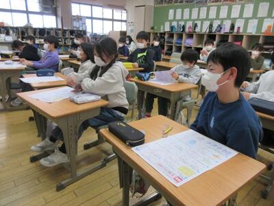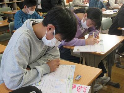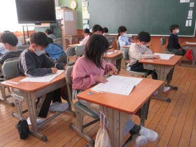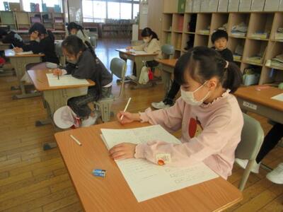 12月18日(木)3校時、1年生は国語のテストに挑戦中。問題文を読み、答えを考え、丁寧に書いていきます。悩みながら、一度書いた答えを吟味し修正しながら丁寧な文字で書いていきます。1年生の集中力、素晴らしい!! 3年生は、国語でお薦め本の紹介の続きです。何度も読み返し、お薦めの理由を吟味します。思考力が鍛えられます。4年生は、髙橋養護教諭と担任によるT・T指導で、保健の学習です。「思春期に起こる体の変化」を学び、差別しないことや言葉に気を付けることなど大切な心と態度を考えていきます。学んだことが実践に生かされることを願っています。