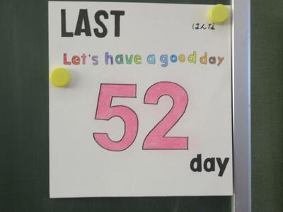 12月16日(火)、6年生の教室黒板に「52」の数字が・・・。卒業までのカウントダウンカレンダーで、あと52日間。年末年始休業前に、算数では前学年の学習内容も含め、これまで学習したことを復習していきます。自信が無い内容や忘れてしまっていた内容など、弱点克服を最優先に取り組みました。不安なときや確かめたいときには、近くの仲間と自然に交流。1日1日、1時間1時間を大切に卒業に向かっていきます。