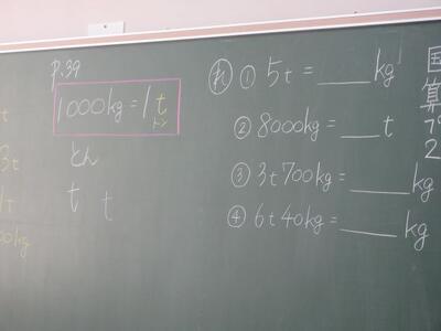 12月17日(水)2校時、3年生は重さの学習で、「t」と「kg」の関係を理解させます。1tが1000kgであることを踏まえ、様々な重さを正しく記述していきます。授業終了ぎりぎりまで練習・発展問題で力をつけます。5年生も算数の学習中。単元終わりの復習問題コーナーで、これまで学習した内容を再確認していきます。忘れた記憶や曖昧な記憶を呼び覚ましながら、1問1問丁寧に解き確認していきます。6年生は、4月に解いた算数のテストを再度自力で解かせます。無答は認めません。難しくとも、途中まででも、理由等を記述させます。粘り強く問題に向き合った6年生、成長を感じます。