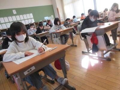 12月19日(金)2・3校時、全学年の子供たちがCRTテストを実施しました。1年間の学びの成果を確認し、課題を見つけることがめあてです。国語と算数の問題に対して子供たちが粘り強く取組み、答えを何度も書き直してはじっくり考えたり、時間内に解き終えた場合には繰り返し見直したりする姿が見られました。難しくともあきらめず問題を読み直し解決への糸口を見出すよう努力すること、何も答えないのではなく途中まででも自分の考えを記述すること、そんな姿勢を谷地南部っ子に求めていきたいと思います。