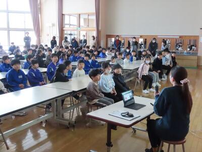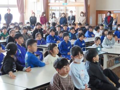 1月27日(火)5校時、キャリア教育並びに地域学校協働活動の一環として、4年生を対象に職業講話を実施しました。講師は、ルイ・フィリップの料理人である鈴木さんです。授業がスタートすると、鈴木さんの日頃の仕事振りや料理を作ることへの情熱、工夫など次々と話が進み、あっという間の45分間でした。子供たちはメモを執ることも必死で、真剣に話に聴き入っていました。4年生にとっては、来年度、そして再来年度にお話を聴くチャンスがあります。子供たちには正しい職業観を身に付け、夢と希望を持って学校生活を送って欲しいと思います。