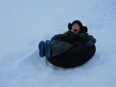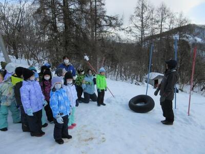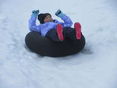 2月6日(金)に、1年生が朝日少年自然の家でチューブ滑りを満喫してきました。積雪量が十分なのか、前日の雨の影響でコースコンディションに問題はないのかなど、若干の不安要素はありましたが、当日何の問題も無く、たっぷりとチューブ滑りを楽しむことができました。本校の子供たちは雪遊びが大好きで、休み時間には高学年児童も友情の丘でそり滑りを楽しむほどです。残念なことはスキー教室がなくなり、雪国に生まれながら授業でスキーの楽しさを味わわせるチャンスがないこと。そんな中での今回のチューブ滑り、子供たちは雪遊びの楽しさを全身で味わうことができたことでしょう!!