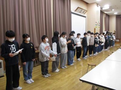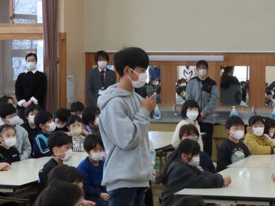 2月13日(金)に今年度最後の授業参観を行いました。国語や生活、学級活動など、各学年・学級で子供たちと担任、子供たち同士が笑顔でかかわりながら学びを進めている様子を観ていただきました。複数学年で、保護者への感謝の気持ちを伝える場面も・・・。その後、PTA全体会において、学校評価や学力の結果のほか来年度の学校経営基本方針案について説明させていただきました。今年度は、熊対策など子供たちの命を守ることを一層意識した1年間でした。現在も多くの保護者や地域の皆様方のご協力をいただき、登校時の見守り等を継続しています。残り約1ヵ月。このまま事故や怪我等無く過ごすことができるよう、今後も指導を行っていきたいと思います。