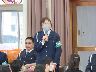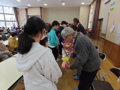 2月19日(木)朝の時間に、交通指導員さん並びに見守りボランティアの皆さんへの感謝の会を行いました。晴れの日も雨の日も、そして雪の日も毎日、交通安全と挨拶の声がけをしていただいたことに対し、短時間であっても対面で直接感謝の気持ちを伝えることが大切だと考えたからです。6年生の進行で会を進め、代表児童からの感謝のメッセージ、花束贈呈、校歌の歌のプレゼント、そして交通指導員代表の方からのご挨拶がありました。お陰様で、これまで事故や怪我無く、子供たちは元気に過ごしています。今年度も残りわずかですが、引き続きよろしくお願いいたします。