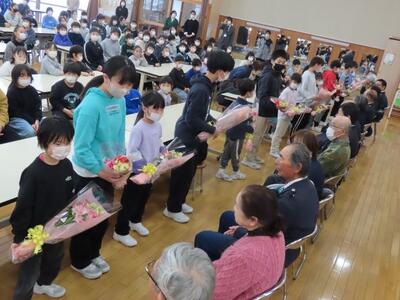 2月26日(木)中間休みから3校時にかけて、6年生を送る会を行いました。5年生が企画・運営し、各学年に6年生の案内や会場装飾などを割り振り、みんなで創り上げた会でした。学校○✕クイズや縦割り班でのハンカチ落としゲームなどのプログラム一つ一つにも大切なメッセージが込められ、味わいながら会を楽しみました。6年生からも学校などに関するクイズ出題があり、縦割り班の下級生一人一人への手紙贈呈もありました。6年生と過ごせる学校生活も残り14日間。6年生には最後までゆずり葉としての役目を果たして欲しいと願っています。そして、1年生から5年生については、残りの日々も6年生との大切な思い出を積み重ね、感謝の気持ちを伝え続けて欲しいと思います。