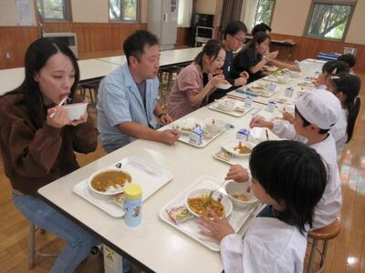 子供たちが役割を分担し、給食を盛り付ける係、机に運ぶ係、「いただきます」をする係など積極的に活動する姿を見て、保護者は子供たちの学校生活の充実ぶりを実感しました。また、家ではあまり食べない子供でも、給食のメニューや量、それをがんばって食べる姿を見て、家では感じ取れない子供たちの成長を見ることができました。保護者の交流の場としても活用することができ、大変有意義な企画にすることができ、PTA委員一同、大変喜んでいます。