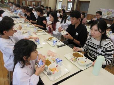 10月9日(木)に学校の食堂で、第1学年のPTA行事として「親子給食」を実施しました。