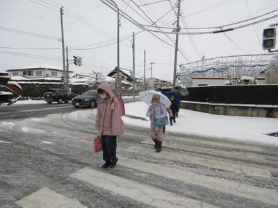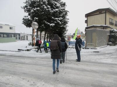 1月15日(水)と16日(木)の2日間にわたって、今年度最終となる3回目のあいさつ運動が行われました。初日は雪が降り足元の悪い中、2日目は冷え込みの厳しい中で学校内の要所に立っていただき、子供たちの安全確保とあいさつの呼びかけにご協力いただきました。子供たちのあいさつや停まってくださったドライバーへのお辞儀など、回数を重ねるごとに意識が高まってきていると感じます。そして、何よりも無事故で元気に学校生活を送っていることを嬉しく思い、保護者・育成会議の皆様・地域の皆様・交通指導員の皆様方のお力添えのお陰と感謝申し上げます。