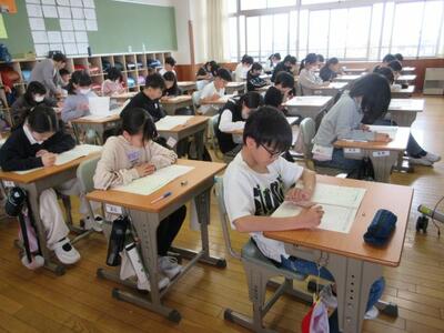 挨拶を繋いで3日目。4月23日(水)は、4年生の出番。玄関ホールに一列に並び「おはようございます!!」と大きな声で挨拶をしました。昇降口から入ってきた他の学年の子供たちも、その元気の良さに圧倒され気味。日に日に挨拶運動が活気を増しています。2校時、1年生は道徳の授業。昨年度のたくさんの行事の写真を見ながら、これからの楽しい学校生活に期待感を膨らませていました。2年生以上は、NRTテストに挑戦。時間ぎりぎりまで、粘り強く問題を解いていました。