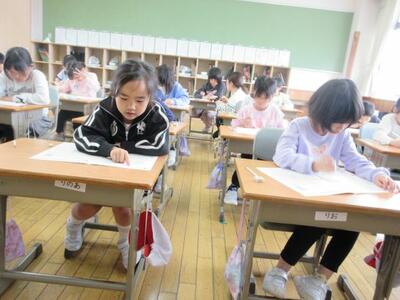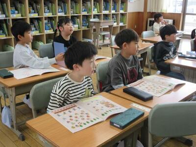 4月24日(木)2校時、1年生は算数の学習。5はいくつといくつを考えます。〇を色染めしたり指を使ったりして一生けん命考えます。2年以上は、NRTテストの2日目。頭をフル回転させ、あきらめずに問題に向き合います。粘り強い態度が着実に育っています。ふたば学級は、算数の学習中。4年生の仲間が、2年生ができたことを一緒に喜んでくれて、本当に微笑ましい光景でした。明日は、今年度初めての授業参観日です。各学年・学級で子供たちの作品等を掲示しながら、参観いただけることを心待ちにしています。よろしくお願いいたします。