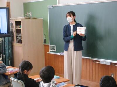 4月22日(火)朝の挨拶運動は、5年生へバトンタッチ。今日は、玄関の外でも元気な挨拶を交わし合いました。2校時の授業を覗くと、3年生は音楽で、講師をお招きしてのリコーダー講習会。模範演奏を聴いた後、リコーダーの正しい持ち方やポイントとなる音の出し方などについて丁寧に教えていただきました。子供たちは演奏したくてたまらないといった様子。今後、素敵な演奏が響くことでしょう。6年生は、算数で点対称の特徴を見つける場面でした。提示された図形をよく調べ、辺や角にどのような秘密があるかをみんなで考えます。黒板の前に出て自分の考えを仲間に伝え、話し合うことも良い経験です。