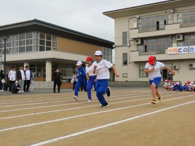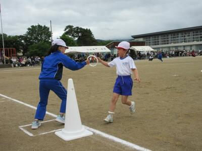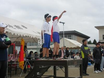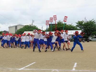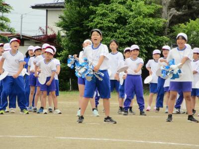 5月31日(土)危ぶまれた天候も何とか持ちこたえ、無事運動会を実施することができました。プログラムを変更し、応援合戦やブロック対抗リレーなどの大きな競技を優先的に行いました。曇り空を突き抜けるような大きな声が響いた応援合戦。順位が落ちてもあきらめず、しなやかにバトンを繋いだリレー。最後までチームと組の勝利のためにがんばった団体種目。そして、荒木講師を招いて走力を高めた徒競走。最後の最後まで両組が完全優勝を目指し競い合いました。結果は、白組の完全優勝。勝っても負けても、子供たちの目には美しい涙が光っていました。大変寒い中、最後まで応援してくださった保護者並びにご家族、地域の皆様方に心から感謝申し上げます。