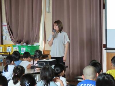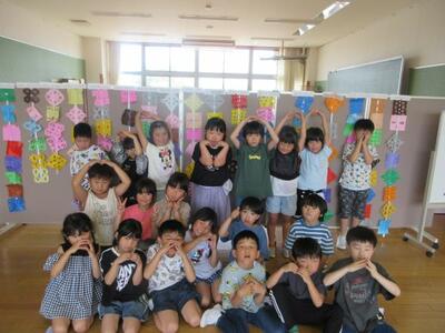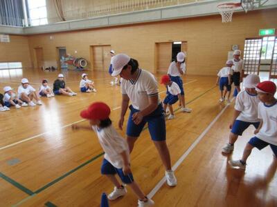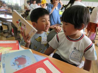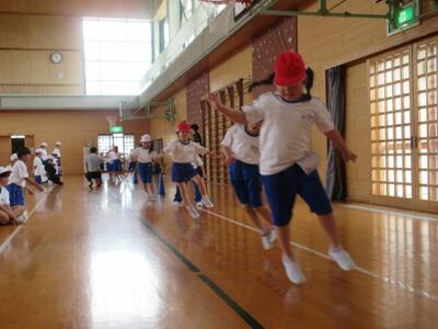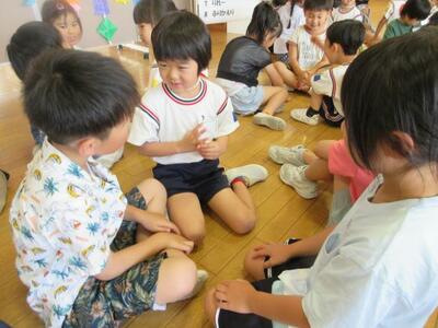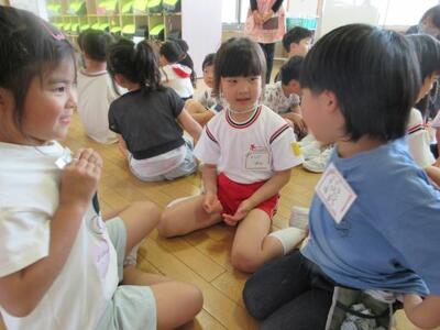 6月6日(金)、1年生がひかり幼稚園年長児と交流を行いました。自己紹介から始まり、最初は小学校の様子を紹介します。ランドセルや教科書等を自慢げに見せる1年生は、頼もしいお兄さん・お姉さんです。その後、体育館でじゃんけん列車を一緒に楽しみます。年長児の仲間のことを考え、歩き方も優しくなります。終始笑顔で、温かな交流となりました。