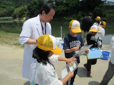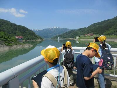 6月7日(土)、山形新聞・山形放送8大事業の一つである「最上川200キロを歩こう」イベントに、4年生が参加しました。晴天に恵まれ熱中症対策を徹底しながら、最初は寒河江ダムの見学です。普段は入れないダム内の通路を歩いたり、地上に出てからダム全景と噴水を見学したりしました。ダムの役割についての詳しいお話も聞くことができました。その後、大江町内を流れる最上川の左岸を歩き、水質検査も体験しました。川の水質は中性で、生き物が棲みやすい環境であることに安心しました。私たちの生活に欠かせない存在である最上川について知る良い機会となりました。休日のイベントとなったにもかかわらず、保護者の皆様方より快く参加の後押しをしていただき感謝申し上げます。