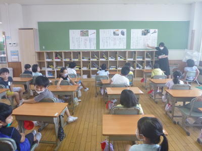 4年生と1年生に、15分間ずつ。真剣に聞いていました。