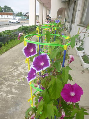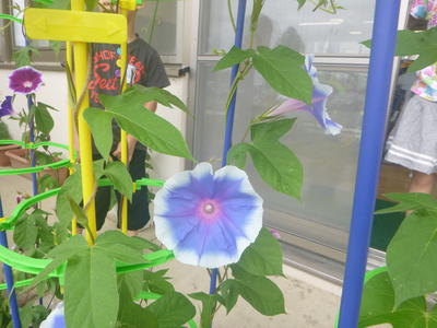 アサガオ、たくさん咲いて、1年生を待っていました。