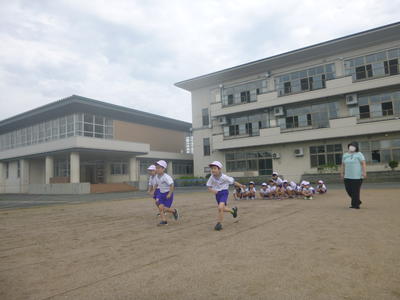 夏休み明けの運動会へ向けて、紅白を決めるためのタイムをとっています。
