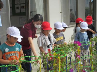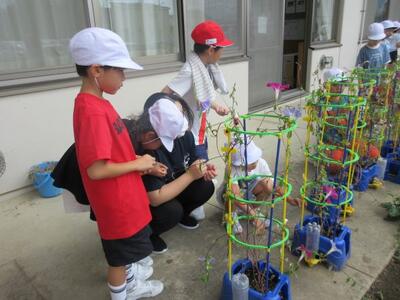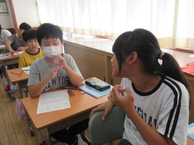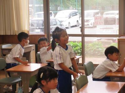 9月4日(木)3校時、1年生は生活科でアサガオの観察中。自分が愛情を込めて育ててきたアサガオの様子を見て、前と変わったことや種ができていることなどに気づいていました。「その種、どうするの?」と尋ねると、「僕たちに2年生がプレゼントしてくれたから、僕たちが今度の1年生にプレゼントするよ。」と優しい答えが返ってきました。4年生は、理科で月の動きを学習中。動画を視聴しながら、満月が東から上り、南を通って西に沈むこと、三日月も同じ動きをすることをしっかりと理解します。実際の観察では、どんな結果だったのでしょうね。