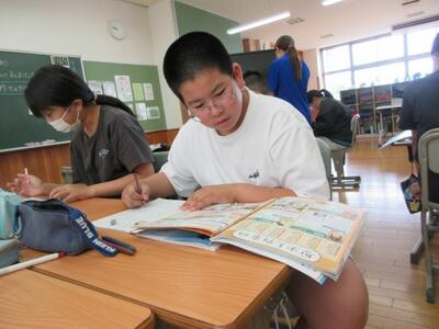 6月26日(木)2校時、新採教員の資質向上のために6年 松田教諭が社会科の示範授業を行いました。内容は、聖徳太子が行った天皇中心の国づくりです。社会や歴史への興味関心を高めようと、復習クイズから入り、聖徳太子にまつわるエピソード紹介の時間がありました。その後、教科書や資料集を使い、聖徳太子が行ったことを調べ簡潔にノートにまとめていきます。必要感があれば、自力にこだわらず仲間と協力し合いながら調べ学習を粘り強く調べます。限られた時間内では調べ切ることができないことを想定し、意図的に家庭学習に繋げます。6年生の探究は続きます。