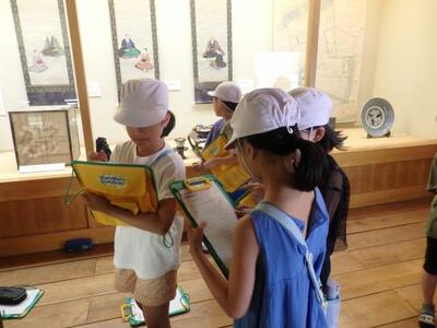 6月30日(月)、3年生が総合的な学習の時間に、紅花資料館見学を行いました。今年度、3年生は「紅花」をテーマに調べ学習を展開していきます。資料館では、展示されている歴史的資料に見入り、係の方の説明をメモをとりながら聞きました。また、実際に紅花が植栽されている様子も見学し、自分たちが育てている紅花と比較することもできました。今回の見学で生まれた新たな問いや疑問を整理しながら共通課題を設定し、今後みんなで追究していきます。