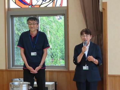 7月1日(火)、給食時間にJAの皆様方が来校され、紅秀峰の贈呈式を行いました。紅秀峰が誕生した経緯等をお話しいただき、6年代表児童2名から感謝の言葉を伝えました。その後、みんなで味わっておいしくいただきました。子供たちに配られた紅秀峰は、色づきが良く、程よい硬さがあり甘みがたっぷりと詰まっていました。給食で当たり前のように味わえることに感謝し、食べる喜びを味わわせていきたいと思います。