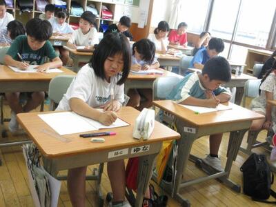 7月4日(金)4校時、4年生が道徳の授業を行いました。今回は、寒河江市教育委員会の古澤指導主事をお招きし、授業づくりについて指導いただきます。扱った内容は、友だちから送られた葉書きが料金不足だったことを受け、その事実を友だちに伝えるかというものです。子供たちは自分の生活経験と重ね合わせ、伝える・伝えないを真剣に考え、その理由も整理しました。今後の生活で、友だちに伝える時に大切なことをみんなで考える良い時間となりました。