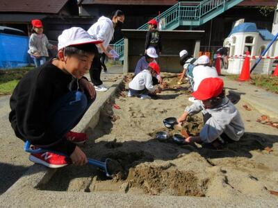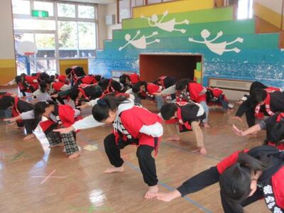 11月4日(火)に、5年生がひかり幼稚園を訪問し園児と交流を深めてきました。最初は、小グループで自己紹介とお話会。少しずつ緊張が解けたところで、園内外で一緒に遊びを楽しみました。5年生の子供たちは、園児の希望などをよく聴き、どうしたら楽しめそうかを考えながら行動していました。その後、南小祭で堂々と発表した「ソーラン節」を園児の前でもう一度発表。その堂々とした姿と見事な動きに園児は見入るばかり。最後は、園児から温かく見送ってもらいました。4月の再開が待ち遠しいです。