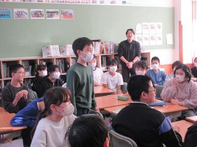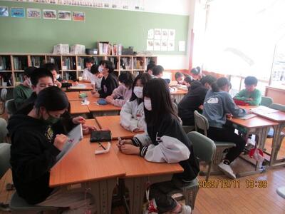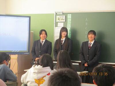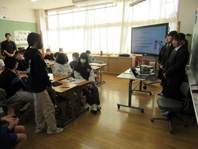 12月11日(木)5校時、職業講話第2弾として、6年生が本校出身である3名の谷地高生の皆さんから、谷地高の学校生活の魅力や今意識すべきことなどのお話を聴きました。6年生のためにギリギリまで検討し作成されたプレゼン資料には、谷地高の1日の流れや教科、部活動、魅力などが写真やイラスト入りで丁寧にまとめられていました。お話を聴いた後、6年生からは制服や校則のこと、複数回あるテストのこと、部活動のことなどたくさんの質問が出され、いずれの質問にも丁寧に答えていただきました。6年生には、谷地高生から最後にお話があった「今意識すべきこと」を今後意識し、充実した学校生活を送って欲しいと思います。谷地高生の皆さん、本当にありがとうございました。