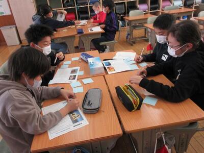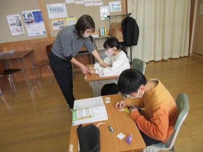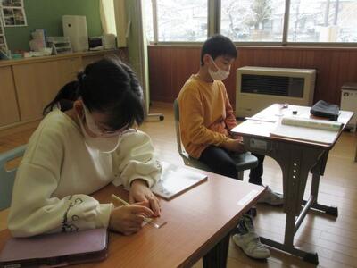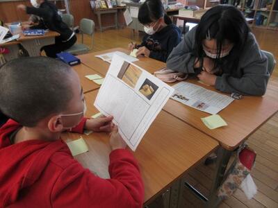 12月12日(金)、各学年教室を覗いてみました。1年生は、寒さに負けず体育館で体育の学習中でした。フラフープやゴム紐などの障害物を、体を巧みに使ってクリアしていきます。忍者のような素早い動きに感心しました。4年生は、国語の学習で未来に繋ぎたい県内の伝統工芸品を調べ、各自がまとめたリーフレットを読み合っている場面でした。仲間のリーフレットを真剣に読み、コメントを書いていました。わかば学級では、算数の学習中。たくさんの点の中から2点を選んで直線で結びます。2本の線の交わり方や位置関係を分類し、垂直と平行に繋げていきます。2名とも意欲的に直線で結んでおり感心しました。