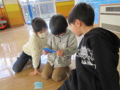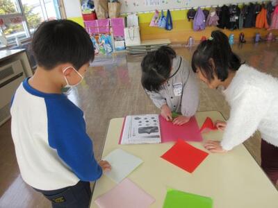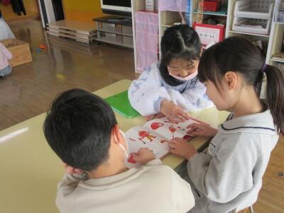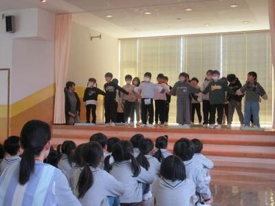 1月16日(金)、1年生がひかり幼稚園に出向き、年長児と交流を行ってきました。予め年長児宛てに準備したお手紙を読みながら渡し、心を近づけました。その後、年長児と折り紙や積み木遊び、鬼ごっこなどを通して、一層心の交流を図りました。1年生一人一人が優しいお兄さん・お姉さんとなり、温かい言葉がけをしたり寄り添いながら活動を進めたりする姿に、1年生の確実な成長を感じ嬉しくなりました。来年度4月からは、2年生となって年長児の皆さんを迎えます。今回の心の交流を通して育んだ「思いやりの心」や「年上としての自覚」等を生かし、2年生として活躍することを期待しています。