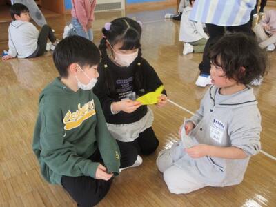 優しいお兄さん・お姉さんとして交流「1年 生活科・ひかり幼稚園年長児との交流」