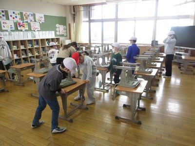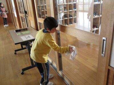 年度末に向けて「大掃除週間」 投稿: 谷地南部小学校 (13:41) 3月6日(金)、年度末に向けて大掃除週間が始まりました。普段行っている掃除内容に加え、クモの巣とりや隅々の磨きなど、一層丁寧に掃除をします。本校の子供たちは、みんな真面目で働き者です。1年生も窓ガラス磨きや上級生の重い椅子下ろしなども一生懸命行っています。6年生を気持ちの良い環境で送り出すとともに、1年間お世話になった校舎に感謝の気持ちを表すために、来週も大掃除に取り組みます。 Tweet -