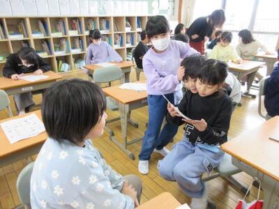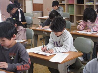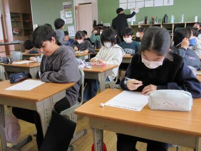 12月18日(木)3校時、1年生は国語のテストに挑戦中。問題文を読み、答えを考え、丁寧に書いていきます。悩みながら、一度書いた答えを吟味し修正しながら丁寧な文字で書いていきます。1年生の集中力、素晴らしい!! 3年生は、国語でお薦め本の紹介の続きです。何度も読み返し、お薦めの理由を吟味します。思考力が鍛えられます。4年生は、髙橋養護教諭と担任によるT・T指導で、保健の学習です。「思春期に起こる体の変化」を学び、差別しないことや言葉に気を付けることなど大切な心と態度を考えていきます。学んだことが実践に生かされることを願っています。