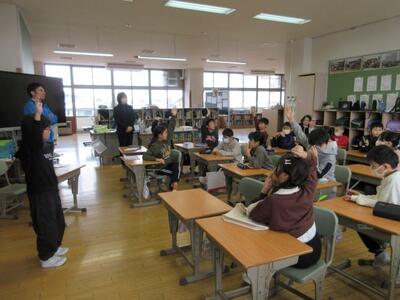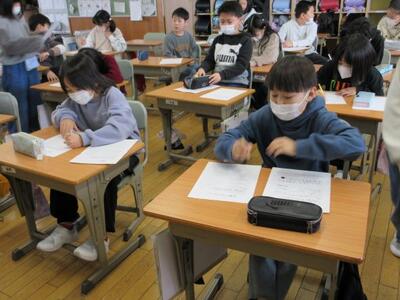 1月15日(木)、3学期の学習を本格的にスタート。2年生は、音楽で「あのね、のねずみは」を学習中。「3番まである歌詞以外に、他の動物なら何と鳴くのかな。」という指導者の問いに子供たちが反応し、他の動物の鳴き声で自ら歌詞を作成。みんな笑顔で歌っていました。4年生は、算数で評価テストをタブレットでチャレンジ。タブレットの扱いや問題の進め方などについてICT支援員と教務主任からもサポートを受けながら、問題を解き進んでいました。