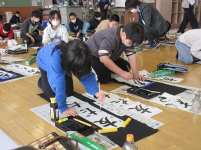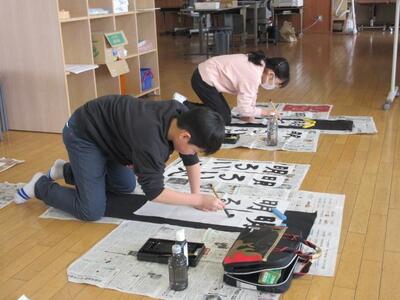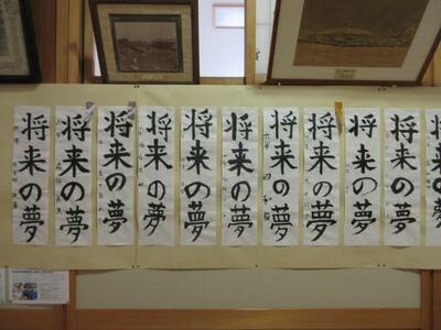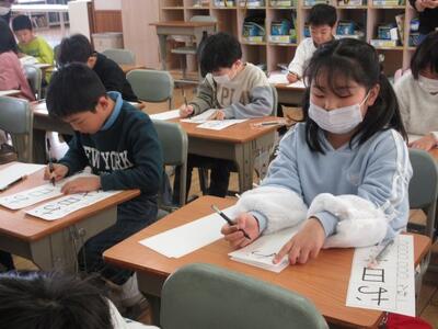 1月9日(金)2校時、校内書初め大会を行いました。最初に校長から「先人が生み出した文字を美しく書いて欲しい。」「大会以上に、日常のノート等に書く文字を丁寧に書いて欲しい。」と、二つのお願いをしました。その後、全学年の子供たちが手本を見ながら、集中して書初めに取り組みました。放課後の審査会では、悩みに悩み、賞をつけました。現在、校舎内の玄関ホールと職員室前壁面に子供たちの力作が展示されています。1月23日(金)まで自由にご覧いただけますので、ぜひご来校ください!!